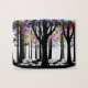 Eine Silhouette eines Waldes mit bunten abstrakten Konfetti-Blätter auf weißem Hintergrund. Die Bäume selbst bleiben schwarz. Die Blätter sind rot, rosa, orange, gelb, grün, blau und andere. Die Stimmung ist eine von Schönheit, Ruhe und Spaß! Die Farben sind lebhaft, und die Silhouette der Bäume ist sowohl anmutig als auch geheimnisvoll. Es hat eine zeitlose Qualität, die Menschen jeden Alters anspricht.