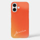 Schützen Sie Ihr Handy stilvoll mit diesem personalisierten, abstrakten Retro-Gradient-Handy-Gehäuse mit fett orangefarbenen Tönen. Ideal für Liebhaber Vintag inspirierter Designs mit moderner Drehung, kombiniert dieses Gehäuse einen warmen Farbverlauf mit schlanker, minimalistischer Typografie und schafft so ein einzigartiges und auffälliges Accessoire. Passen Sie es mit Ihrem Namen oder Ihren Initialen an, um es wirklich zu Ihrem eigenen zu machen. Ideal, um Ihrer Technik eine Persönlichkeit hinzuzufügen, ist diese Handy-Hülle ein großartiges Geschenk für Liebhaber der Retro-Ästhetik und lebendiger, stilvoller Designs.