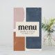 Abstrakter Rost, Marinebahn + rosa modernes zeitgenössisches Hochzeitsmenü. Grafisches handgemaltes Design. Skripttext und fette Typografie.