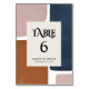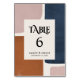 Abstrakter Rost, Marine + rosa moderne zeitgenössische Hochzeitsstimmung Tischnummer. Grafisches handgemaltes Design. Skripttext und fette Typografie.