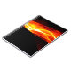 Abstrakter roter Rauch Feuer über schwarzem Hinter Notizblock