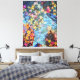 Das Bild ist ein lebendiges Overlay von Herbstblättern und ein Stadtbild. Die Blätter in Rot, Gelb und Rosa sind über Gebäude überlagert. Der Hintergrund zeichnet sich durch einen blauen Himmel mit einem strukturierten Effekt aus, der eine traumhafte Atmosphäre schafft. Bare Baumzweige verflechten sich mit den Blätter und Gebäude und fügen der Komposition Tiefe. Die Gebäude sind modern und groß und deuten auf eine städtische Umgebung hin.