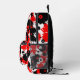 Abstrakter Rucksack mit roten, schwarzen und weißen Flecken