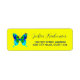 Abstrakter blauer Schmetterling auf gelbem Hintergrund.