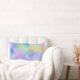Dieses Kissen splattered mit Blues, Rosa, Grün und Gelb.