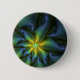 Abstrakter Stern, Shiny Blue Green Golden Fraktal Button