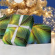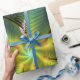 Abstrakter Stern, Shiny Blue Green Golden Fraktal Geschenkpapier
