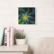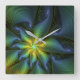 Abstrakter Stern, Shiny Blue Green Golden Fraktal Quadratische Wanduhr