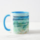 Abstrakte Strandkunst und Küstenbilder. Schöne bemalte Küstenlinie, Aquarellmalerei in Blues, Tees und Cremes. Design von Jenn's Emporium.