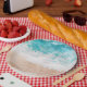 Abstrakter Strand mit Aquarellfarbe Pappteller