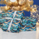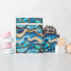 Abstrakter Wavy Blue Pebbles Gold Akzent Geschenkpapier