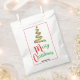 Dieses Papier Gevor Tasche Design zeigt eine bunte abstrakte Kunst wünscht rot, grün und golden Weihnachtsbaum oben und zwei Farben Frohe Weihnachtsbotschaft unten. Der Baum hat ein Imitat Gold Glitzer Stern Oberteil und gerahmt von Rot. Füllen Sie das personalisierende Feld aus oder entfernen Sie Text für die Informationen am Ende des Designs.