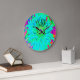 Abstraktes Aqua Decorative Dahlia Blume Große Wanduhr