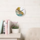 Abstraktes Aquamarines Gold Agate Watercolor Runde Wanduhr