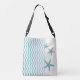 Eine wunderschöne Tasche zum Thema Meer mit abstrakten aquamarinen "Wellen des Surfs" und Starfish am Surfrand. Design auf beiden Seiten. Summery!
