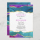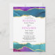 Abstrakte Aquarellfarbe in fuchsienrosa, aquamarine und goldene Farben Hochzeitseinladung mit rosa Schriftart auf Vornamen.