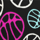 Abstraktes Basketball Ball Muster Kids Wallpaper. Handgezeichnete abstrakte Basketballbälle in verschiedenen Farben auf schwarzem Hintergrund. Gut für ein Kinderzimmer oder ein Kinderzimmer Zimmer.