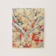 Abstraktes Baumpuzzle in Beige, Bräune, Orange und etwas Türkis.
