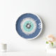 Ein modernes, rustikales Design, das auf dem traditionellen griechischen "Auge" Glücksbringer basiert. Die Single-Stunde '3' ist einfach in ihrem Design und wirkt wie eine Ozeanwelle. Die saubere Palette von Blau, Weiß und Wasser erinnert an die majestätischen Strände des Mittelmeers. Erhältlich in weißen, schwarzen oder Buchenholzrahmen und auch als Framelfrei.
