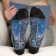 Diese Socken sind mit einer aufwändigen Fraktal-Kunst in dunkelblau und schwarz gestaltet.