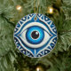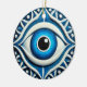 Illustration, die ein lebendiges und detailliertes blaues böse Auge zeigt, umgeben von komplexen Mustern, symbolisiert Klarheit und Vision. Die Komposition strahlt ein Gefühl von Mysterium und künstlerischer Kreativität aus.
