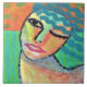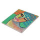 Meine funky abstrakte Malerei einer Frau mit blauen Haaren auf OSB-Brett auf Keramik-Fliese gedruckt