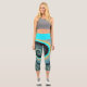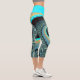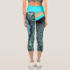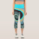 Abstraktes blaues Türkis Orange Fraktal Capri Leggings