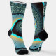 Abstraktes blaues Türkis Orange Fraktal Socken