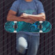 Abstraktes blaues und Aquamarines Spiralmuster Skateboard