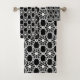 Einfaches und elegantes weißes Blumen-Mandala-Muster auf schwarzem Badehandtuch-Set. Elegantes, einfaches Design für jeden!