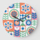 Abstraktes Blumendesign, skandinavisches Folklored Große Wanduhr