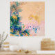 Abstraktes Blumenhintergrund Blau und Beige Poster