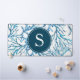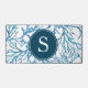 Diese abstrakte Schreibtischmatte wurde entworfen mit meiner original Aquarellkoralle in Blautönen auf weißem Hintergrund. Anpassen mit Ihrem Monogramm Initial in weiß über Marineblau. Oder fügen Sie Ihr Logo hinzu. Eine einzigartige Schreibtischdekoration für Ihr Zuhause-Büro mit Küsten-Thema und kleine Unternehmen.