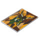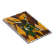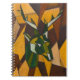 Ein stilvolles Notizbuch mit einem Reh auf orangefarbenem und braunem Hintergrund in einem modernen abstrakten Design.