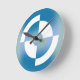 Wall Uhr mit Bild und abstraktem Design in hellblau auf dem Gesicht der Uhr. Anpassbar.