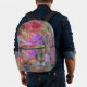 Dieser Rucksack ist abstrakt und in Aquarellfarben mit Pastellfarben in Rosa, Püree, Gelb und Grüntöne gehalten, die mit schwachen grauen Linien verwoben sind.
