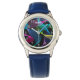 Kinderuhr aus Edelstahl mit blauem Lederarmband