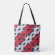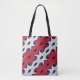 Abstraktes, rotes, schwarz und silberfarbenes Muster in der Tasche.