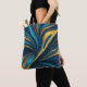 Abstraktes Drehmuster mit blauen, aquamarinen und goldfarbenen Totttaschen