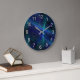 Abstraktes dunkelblaues grünes Nebel-Fraktal Runde Wanduhr