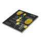 Ein modernes abstraktes Kunstdesign aus der Mitte des Jahrhunderts, das in den 1950er Jahren perfekt in die Welt passte. Verschiedene Formen ovaler Kreise und Linien in gelb und grau auf schwarzem Hintergrund.