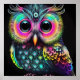 Abstraktes Eule in leuchtenden Neonfarben Poster