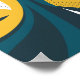 Ein modernes abstraktes Design mit kühnen, schwebenden Kurven in Senfgelb, aquamarin, dunkel, weiß und dunkel Farbtönen. Die Komposition erzeugt ein dynamisches Bewegungsgefühl, wobei die Kurven in einer fließenden, wellenartigen Bewegung konvergieren und abweichen. Bereiche mit gepunkteten Halftonmustern in passenden Farben fügen Tiefe, Textur und ein Retro-Pop-Art-Gefühl hinzu. Das Zusammenspiel von Festfarben und gestrichelten Gradienten steigert den visuellen Rhythmus und die Energie des Kunstwerks insgesamt.