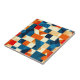 Abstrakte geometrische Muster in lebhaften Farbtönen wie Blau, Orange und Creme, die zeitgenössischen Stil und modernes Design vermitteln. Die Komposition zeigt Symmetrie und ästhetische Balance, perfekt für vielfältige Designanwendungen.