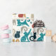 Geometrische Katzen in einer angenehmen Palette von türkisfarbenen und goldenen Stäbchen auf weißem Hintergrund.