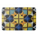 Abstraktes geometrisches Design mit mehrfarbigen Elementen in symmetrischer Anordnung, die moderne Kunststile hervorrufen. Helle Muster und scharfe Kontraste schaffen ein visuell ansprechendes und dynamisches Dekorationswerk.