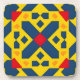 Ein lebhaftes, abstraktes geometrisches Design mit lebhaften Gelb-, Blau- und Rottönen, die ein symmetrisches Muster bilden. Ideal für künstlerische Hintergründe, dekorative Projekte und Grafikdesign-Inspirationen.