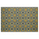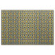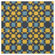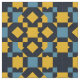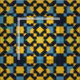 Dynamische Abbildung mit symmetrischem Design mit fett geometrischen Formen in Gelb, Blau und Dunkelfarben, geeignet für moderne und stilvolle Designthemen.
