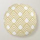 Abstraktes geometrisches, weißes und goldfarbenes rundes kissen
