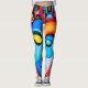 Diese bunten, leuchtenden Leggings wurden mit meiner originalen Collage-Kunst entworfen und zeichnen sich durch ein cooles abstraktes Gesicht mit großen kühnen Augen, neonrosa Wangen und lebendige rote Lippen in einem grungenhaften, modernen Graffiti-Stil mit lila Hintergrund und einer skurrilen Touch aus schwarz-weiß Streifen aus.